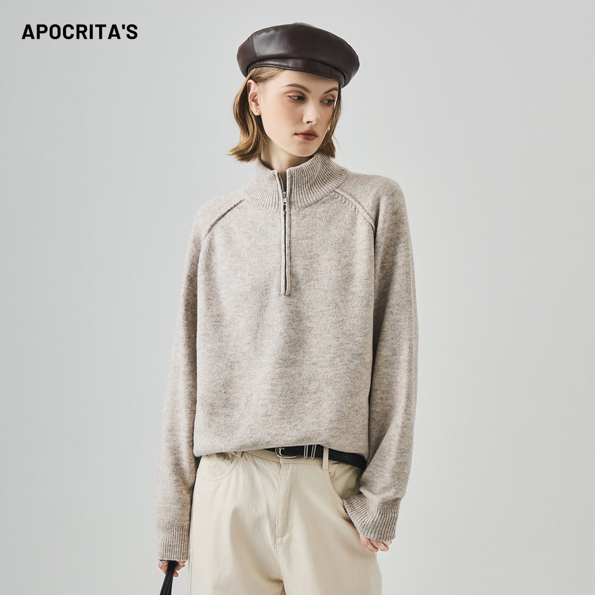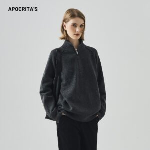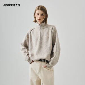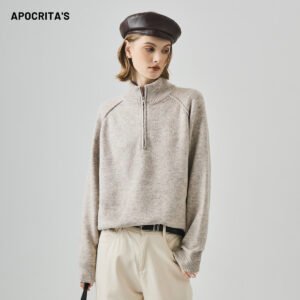 APO Stocks Women’s Sweater Fall/Winter Loose and Comfortable V-Neck Zip Shoulder Long Sleeve Knitted Sweater