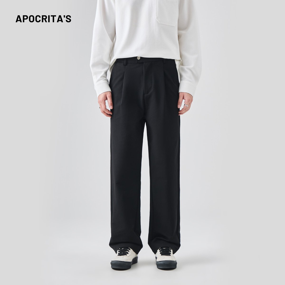 APO Men’s Business Casual Pants Autumn High-end Loose Straight-leg Trendy Versatile Semi-elastic Waist Pants