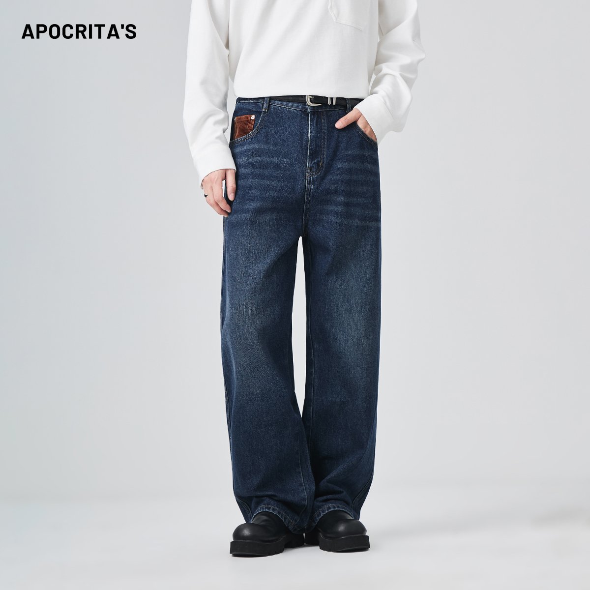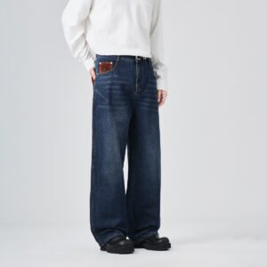 APO OEM Men’s High-end Denim Pants Fall/Winter Loose Straight-cut Trendy Water-washed Pants Jeans