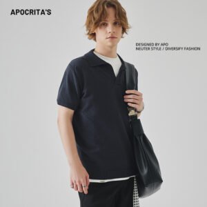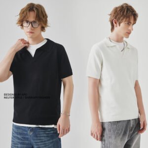 “APO Summer knitted short-sleeved polo shirt for men, high-end, pure color, collarless, casual T-shirt top, polo shirt”의 첫 상품평을 남겨주세요 응답 취소