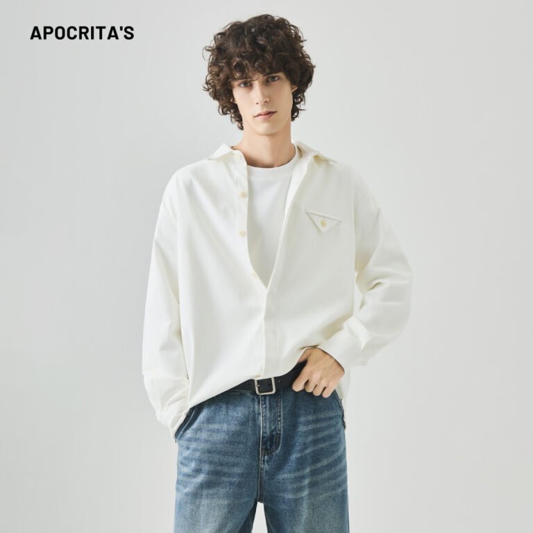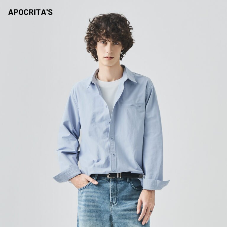 APO Men’s Classic Shirt Heavy Oxford Fabric Loose Casual Autumn Street Fashion Shirt for Men