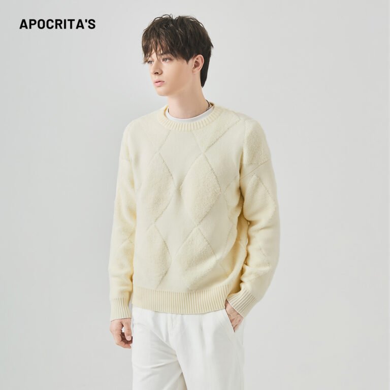 APO Men’s Autumn Trendy Loose Laid-back Style Diamond Jacquard Sweater Top Luxury