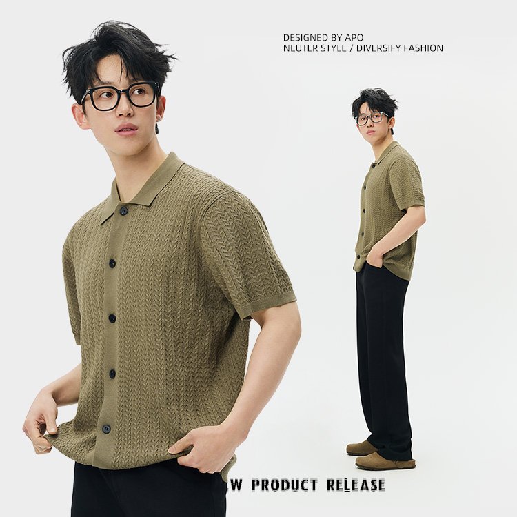 APO Short-sleeved polo shirt for men summer cool loose casual knitted polo shirt men