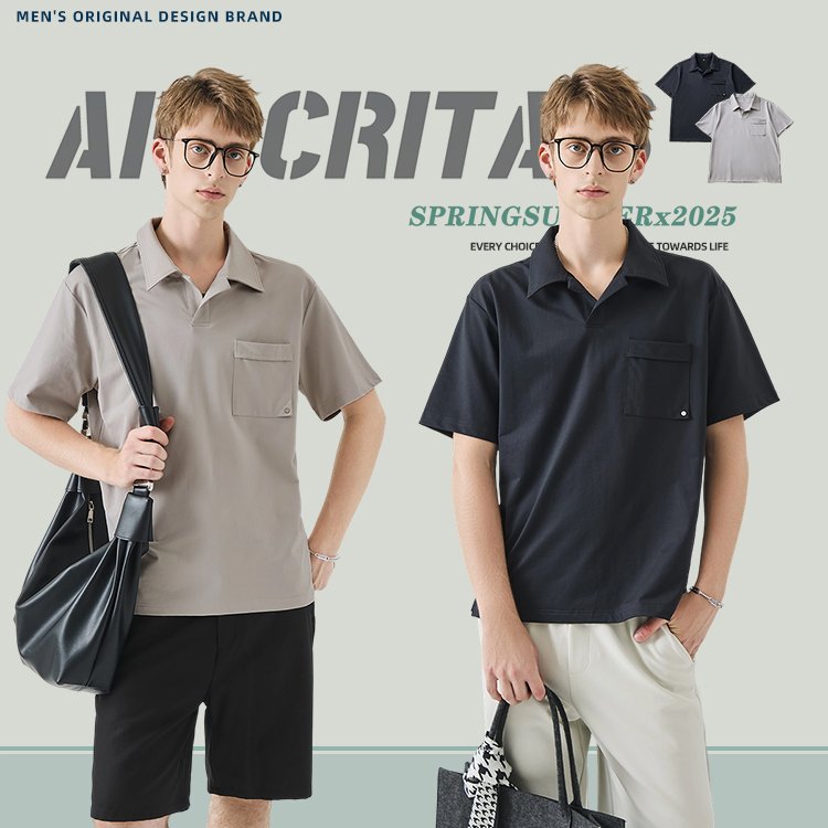 APO Custom logo Mens Casual Knitted Polo Shirt with Pocket Short Sleeve Knitted Turn-down Neck Polo Shirt for Men