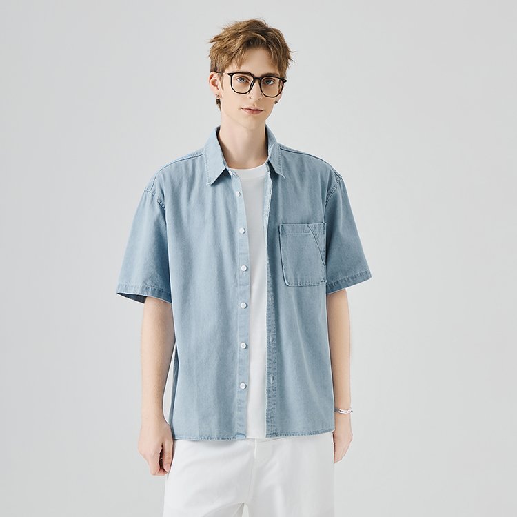 APO Custom Boxy Fit Men Short Sleeve Embroidered Shirt Spring Summer Loose Casual Shirt for Men