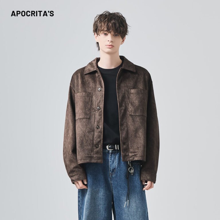 APO Stock Factory Men’s Vintage Jacket Men’s Suede-like Leather Jacket Trendy Outerwear Cool Casual Versatile Motorcycle Style