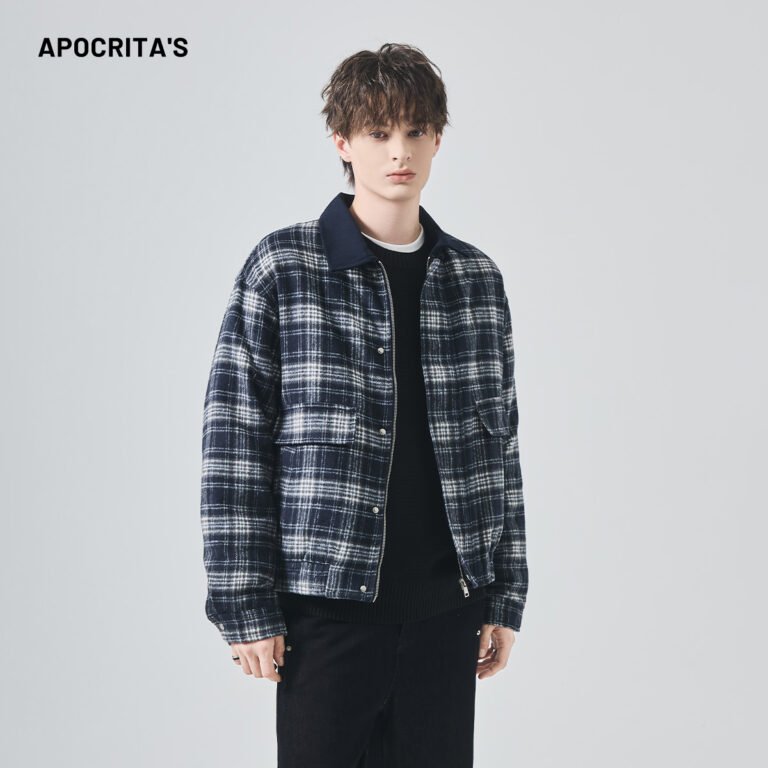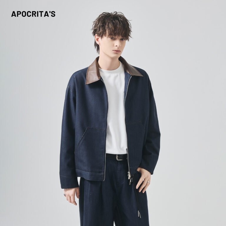 APO Men’s Vintage Loose Winter Washed Zipper Turn-down Collar High-end Relaxed Casual Trend Color-matched Coat Jacket