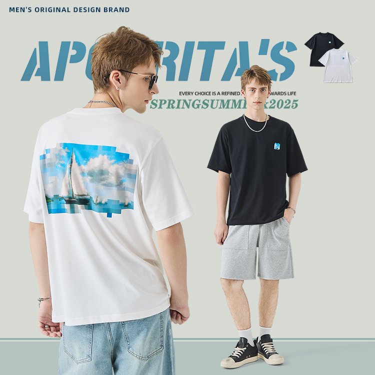 2025 New Short-Sleeved Men’s T-Shirt Trendy Brand Loose Round-neck T Shirt