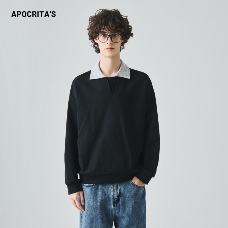 APO OEM Men’s Autumn Streetwear High-end Loose Lapel Casual Color-block Long-sleeve Sweater for Men