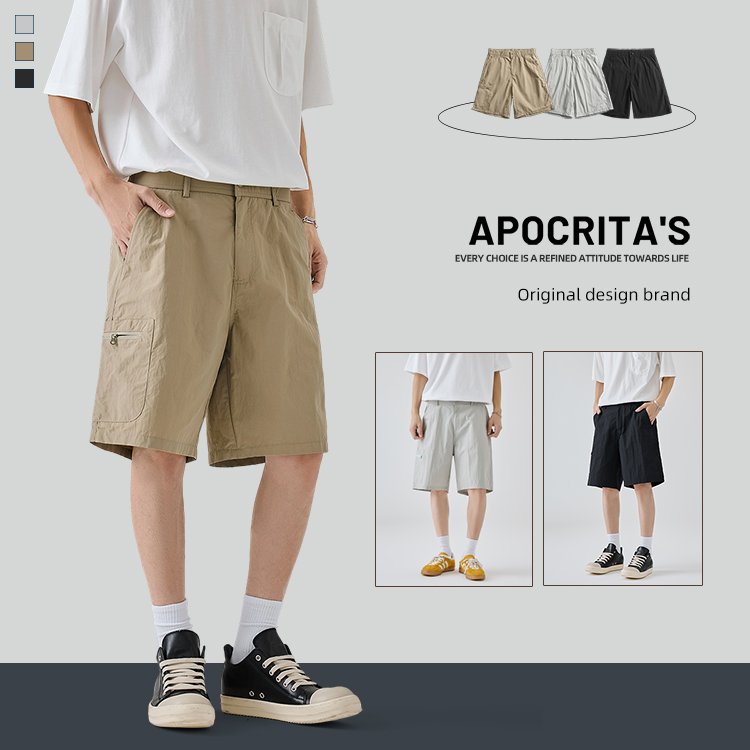 APO Men’s Outdoor Sports Leisure Quick-Dry Shorts for Summer Outerwear Trendy Loose-Fitting Versatile Five-Piece Pants