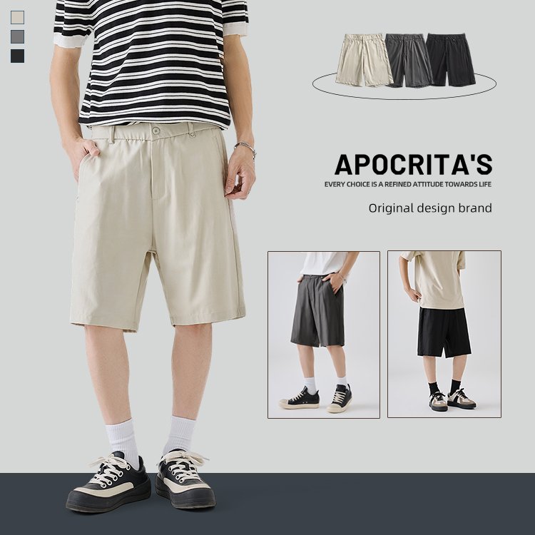 APO Men’s Lyocell casual shorts for summer outerwear, high-end, trendy, loose-fitting, versatile five-pocket pants