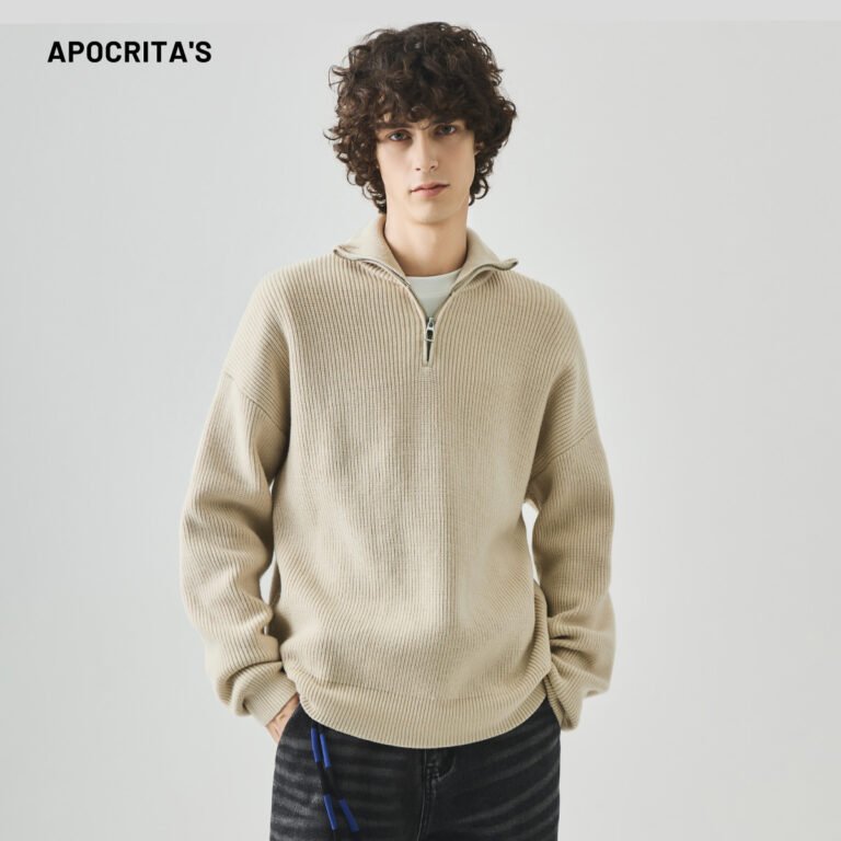 APO Half-zip High-neck Sweater for Men Loose and Casual Long-sleeved Knitwear Autumn Old Money Style Sweater