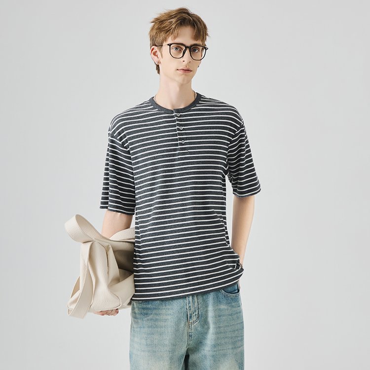 APO OEM Color-block Striped Short-sleeved T-shirt for Men Summer High-end Loose Round Neck Casual Tshirt