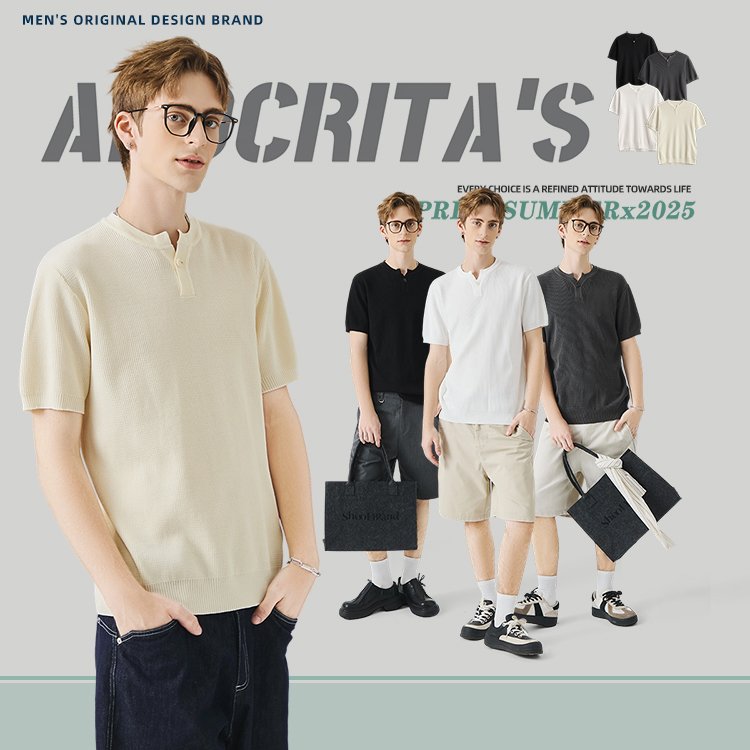 APO OEM LOGO Men’s Knitted Short-sleeved T-shirt Summer Old Money T-shirt Summer Men’s T-shirt