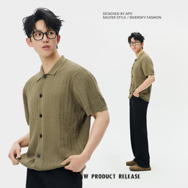APO Business casual polo shirt for men summer high-end collar solid color knitted short-sleeved Polo Shirt