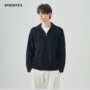 Be the first to review “APO Half-zip High-neck Sweater for Men Loose and Casual Long-sleeved Knitwear Autumn Old Money Style Sweater” Cancel reply