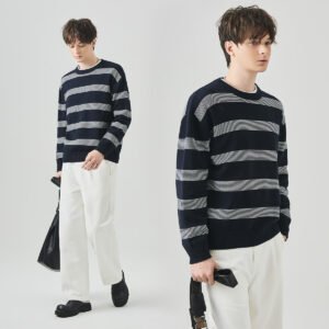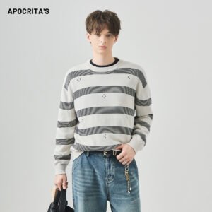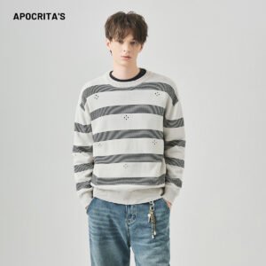 Be the first to review “APO Men’s Cotton Ragged Sweater Autumn Loose Round-neck Laid-back Style Striped Long-sleeved Knitted Shirt Sweater” Cancel reply