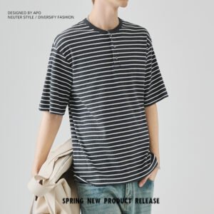 Be the first to review “APO OEM Color-block Striped Short-sleeved T-shirt for Men Summer High-end Loose Round Neck Casual Tshirt” Cancel reply