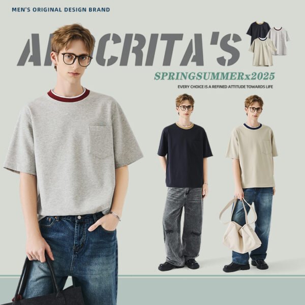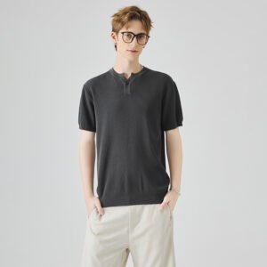 APO OEM LOGO Men’s Knitted Short-sleeved T-shirt Summer Old Money T-shirt Summer Men’s T-shirt