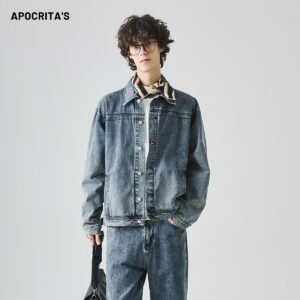 Be the first to review “APO OEM/ODM Men’s Denim Jacket Autumn American High Street Fashion Brand Washed Loose Lapel Jacket Top” Cancel reply