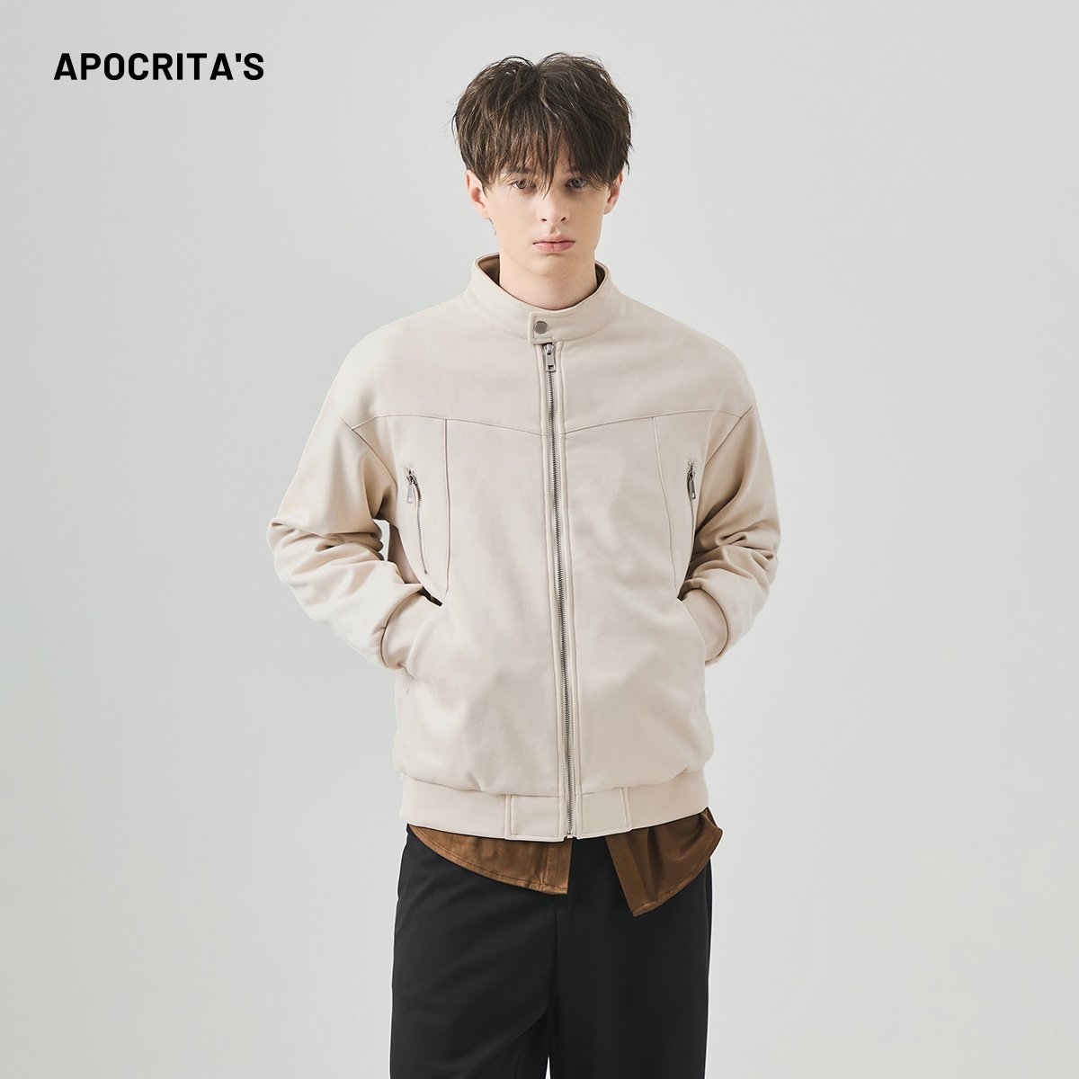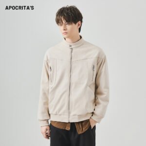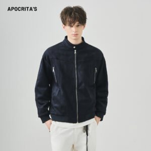 APO Stock Fall Coat Men’s American Street Style Cool Rugged Loose Collar Casual Suede Jacket Top