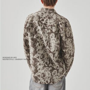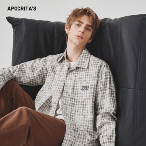 APO Cotton-checkered Shirt for Men in Spring – High-end Trendy Style – Loose Fit with Mandarin Collar – Embroidered Shirt Jacket