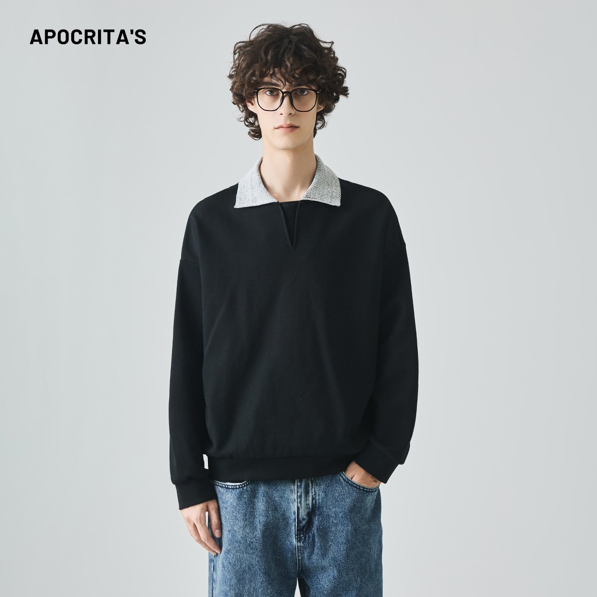 APO OEM Men’s Autumn Streetwear High-end Loose Lapel Casual Color-block Long-sleeve T-shirt for Men