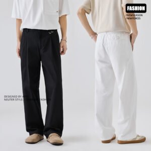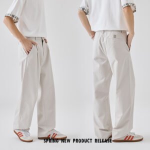New Design White Pure Cotton Casual Pants for Men Loose-Fitting, Straight Leg, Breathable Long Pants Suitable for All Occasions in Summer