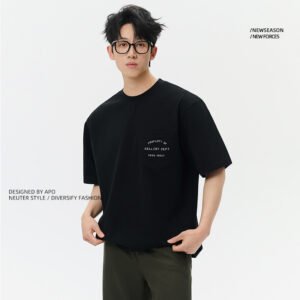 APO Summer cotton short-sleeved men’s T-shirt from a trendy brand with printed design, loose round-neck style, suitable for casual inner wear as a base layer shirt